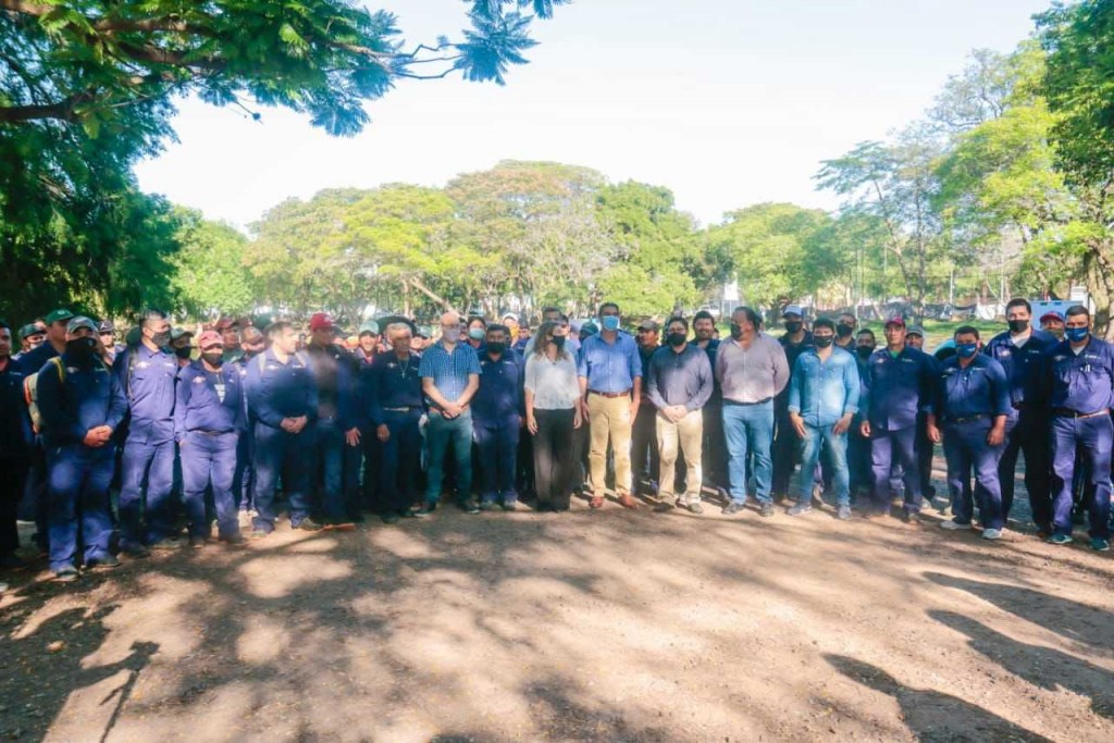 El gobernador Jorge Capitanich, junto con la secretaria de Desarrollo Territorial y Ambiente, Marta Soneira; realizó este martes la entrega de herramientas y equipamientos para el Equipo Hábitat, para fortalecer el cuidado de parques, edificios y espacios públicos de la ciudad de Resistencia.