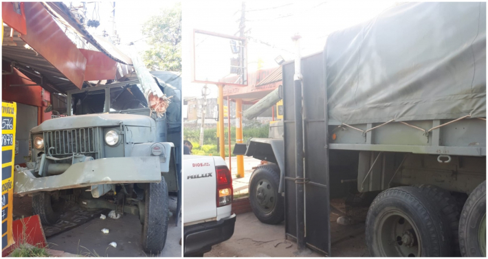 Un camión del Ejército chocó un semáforo y terminó incrustado en un comercio en Barranqueras