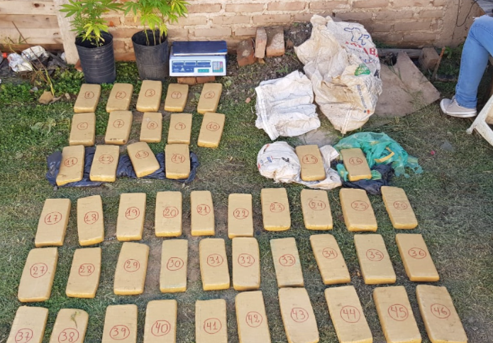 A escasos metros, ingresaron a otro domicilio investigado y hallaron 46 ladrillos con un peso de 42 kilos 279 gramos de marihuana, dos macetas con plantas de cannabis sativa y 3 motocicletas, una Honda Wave 110 cc. con pedido de secuestro activo por robo a solicitud de comisaría Undécima.