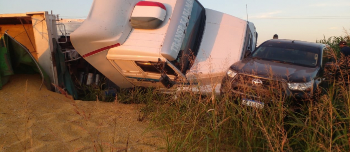 Debido a esta maniobra, el camión volcó en su lateral derecho, esparciendo la carga a la vera de la ruta. Por el hecho no hubo personas lesionadas. Intervino personal de la comisaría Sexta.