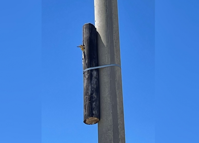 Para preservar el hogar de las aves decidieron recortar parte de los postes de madera que habían sido elegidos para anidar por las aves y anexarlos a los nuevos de hormigón. Así, los trozos de madera fueron ubicados en los nuevos postes a la misma altura y en la misma dirección en que estaban anteriormente.