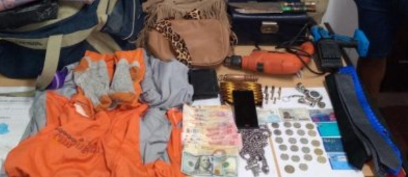 Cuando los agentes verificaron los elementos que previamente abandonó el supuesto ladrón, encontraron un cuchillo, tres taladros, una cadena de oro y plata, un anillo de oro, un juego de camisetas, la suma de $1520, un billete de 100 dólares, varias corbatas, un bolso, dos carteras y documentaciones varias, elementos que guardarían relación en la causa investigada.