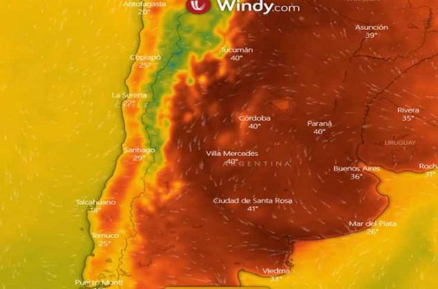 En esas localidades y la provincia del Chaco se estiman temperaturas de 41 grados mientras que para el este de Salta rondarán los 37.