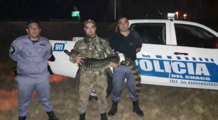 Efectivos de la comisaría segunda de Barranqueras realizaban sus habituales recorridos de prevención cuando se toparon con un yacaré en plena cinta asfáltica.