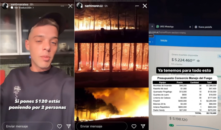 “En 45 minutos juntamos 3 millones de pesos”, contaba Santi en una historia ya entrada la madrugada.