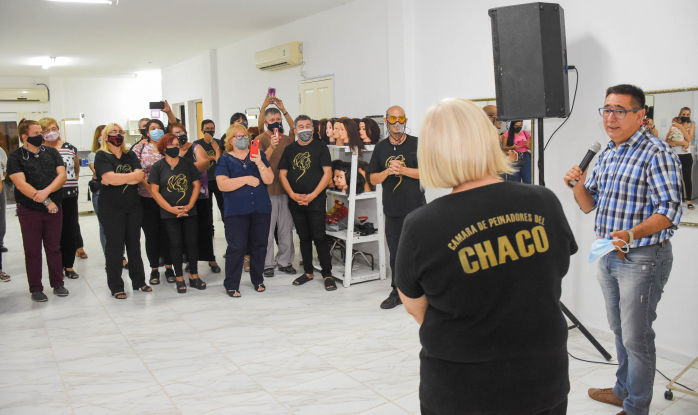 El intendente de Resistencia, Gustavo Martínez, junto a la presidenta de la Cámara de Peinadores del Chaco, Mirta Alvarez de Tapia, socios y alumnos de la institución, inauguraron las instalaciones de la sede que fueron construidas a través del programa municipal de Esfuerzo Compartido. Con el aporte de los materiales por parte de la entidad y de la mano de obra comunal, el predio ubicado en calle Francia 565 cuenta ahora con un edificio nuevo, ya que se ejecutaron obras como ser colocación de pisos, instalación eléctrica, baños y pintura de paredes, además del nuevo cielorraso.