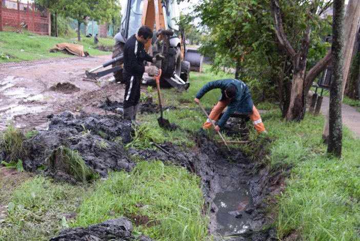 Así, mediante el uso de una retroexcavadora y de un tractor, quitaron los residuos que obstaculizaban en alcantarillas, cruces de calles y “puentes domiciliarios” e impedían el flujo de agua hacia el conducto central ubicado en la cercana avenida Alberdi.
