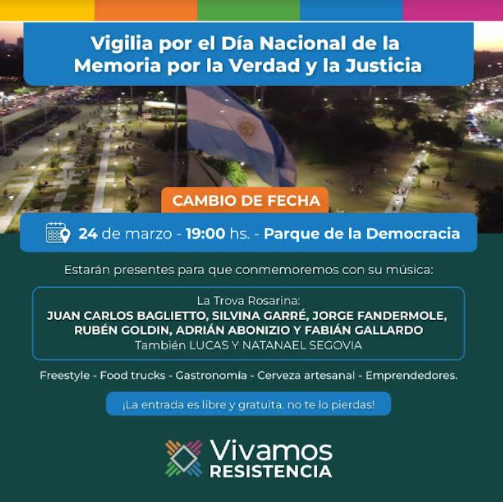 Resistencia se prepara para recibir este 24 de marzo un evento único y que será irrepetible: la actuación de la Trova Rosarina como espectáculo central para conmemorar el Día de la Memoria.