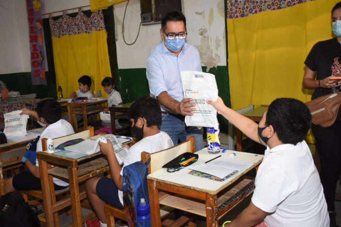 Gustavo Martínez sostuvo que “fue un gusto realizar esta entrega de útiles escolares para los alumnos en esta vuelta a las clases presenciales”, y agregó que “para los padres y las madres que tiene dos o tres chicos o chicas en la escuela es muy importante este kit de útiles que el municipio con fondos propios adquirió y que va a llegar a más de 44 mil alumnos en toda la capital chaqueña”.