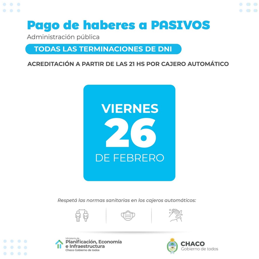Pasivos: viernes 26 de febrero (la totalidad de los beneficiarios, independientemente de la terminación de DNI).