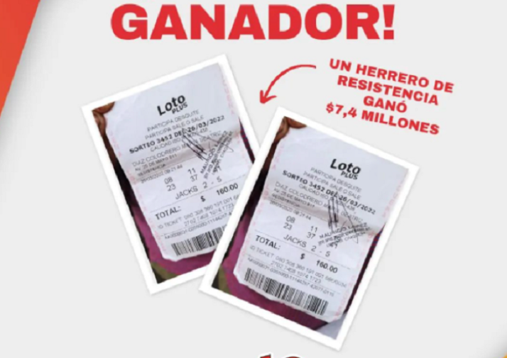 Un herrero que reside en un populoso barrio de Resistencia pasó hoy por las oficinas de Lotería Chaqueña para hacer efectivo el cobro de un premio de 7,4 millones de pesos, obtenido durante la edición del Loto Plus del pasado 26 de marzo. Así se informó desde el organismo provincial a través de sus redes sociales, donde se asegura que se trata de un hombre de 63 años que había adquirido su ticket de la suerte en la Agencia 355 El Griego, ubicada sobre la avenida 25 de Mayo al 811 de la capital provincial.