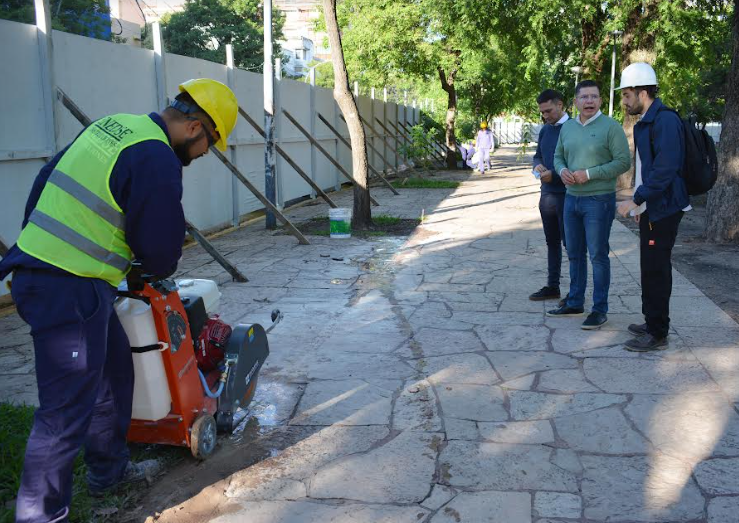 El Secretario explicó que los trabajos contemplan la renovación y creación de nuevas sendas peatonales, reemplazándose el 60% de las lajas existentes desde 1999, y se instalarán nuevas veredas de hormigón monolítico que mejorará la circulación de los peatones y no requieren de mantenimiento. “Se respetarán los mismos lugares donde existen hoy sendas peatonales, con la misma superficie y sin perjudicar los espacios verdes de la plaza”, aclaró.
