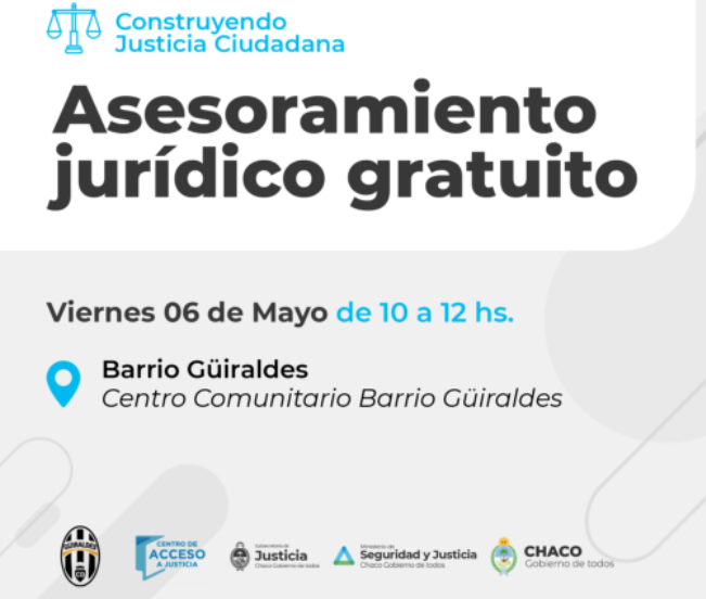 El Ministerio de Seguridad y Justicia realizará, este viernes, un nuevo operativo del programa Justicia Ciudadana en el Barrio Güiraldes de Resistencia. Se trata de una acción conjunta con el Ministerio de Justicia de la Nación y los Centros de Acceso a Justicia (CAJ) donde un equipo de profesionales brinda a las y los vecinos asesoramiento jurídico gratuito en derecho al consumidor, violencia por razones de género, conflictos vecinales y derechos colectivos.
