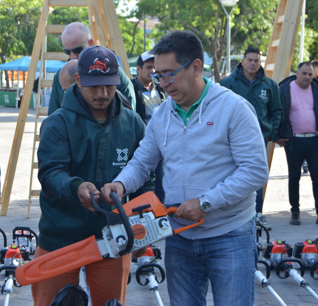 El Intendente entregó equipos de trabajo para los 130 operarios de distintas áreas de servicio, que fueron especialmente capacitados, para ejecutar esta tarea. Este operativo ambiental se desarrolla con una inversión de 8 millones de pesos con fondos propios que permitieron equipar a los operarios con motosierras, muchas de ellas para trabajar hasta en una altura de 4 metros, además de escaleras, elementos de seguridad como ser cascos y antiparras.