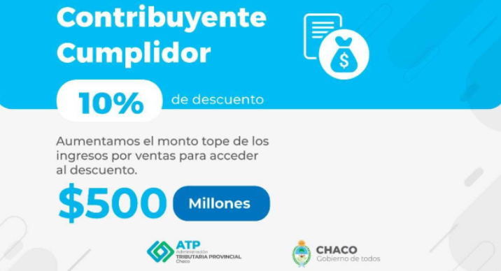 La Administración Tributaria Provincial (ATP) informó que se incrementó el monto para acceder a los beneficios fiscales regulados en la ley 2077-F (Contribuyente Cumplidor), alcanzando a más contribuyentes. El límite de facturación del año anterior se incrementó de 150 millones a 500 millones de pesos.