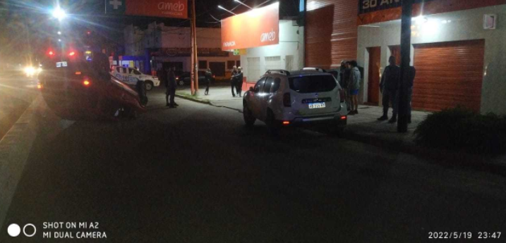 Minutos antes de la medianoche de este último jueves, un fuerte siniestro entre dos vehículos terminó con uno de ellos volcado sobre la cinta asfáltica, en la zona de avenida Alvear y calle 6 de la ciudad de Resistencia.