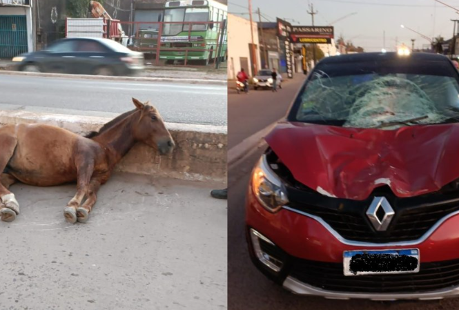En la transitada avenida que cuenta con tres carriles, una yegua preñada quedó postrada con fractura de cadera. Mientras que el vehículo terminó con el tren y parabrisas delanteros destrozados.