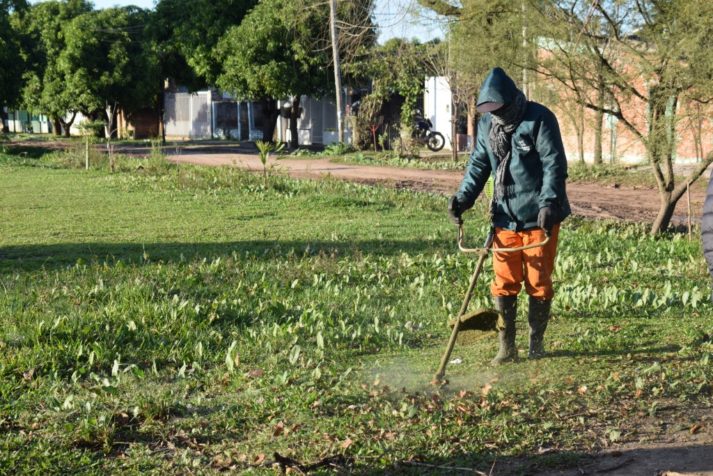 Indicó que “estamos limpiando las calles y veredas, además de los desagües, retirando ramas y pasto suelto, además de desechos que pueden complicar el normal escurrimiento de las aguas al taponar los conductos”.