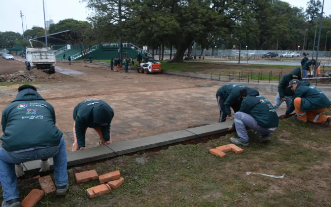 Otra importante tarea estuvo focalizada en la construcción de senderos con rampas en inmediaciones de las tribunas que dan hacia la mencionada pista y a las canchas de básquet, donde además se realiza la pintura de las mismas y la colocación de luminaria. Como acción complementaria, también se ejecutó poda controlada.
