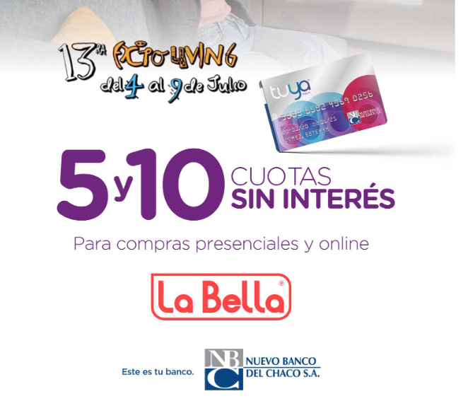 Nuevo Banco del Chaco acompaña en una nueva edición de Expo Living de La Bella para fortalecer la industria chaqueña, con descuentos y promociones con tarjeta Tuya en la muestra comercial que se realizará del 4 al 9 de julio en los locales de Resistencia, Puerto Tirol y Corrientes.