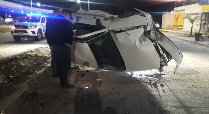 Pasada las 6.30 horas de la mañana de este domingo, la Policía tomó conocimiento de un accidente de tránsito en avenida 25 de Mayo y Ruta 11, allí agentes corroboraron que un automóvil Volkswagen Gol se encontraba volcado.