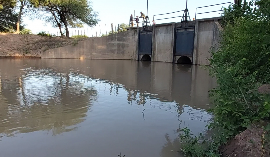 El agua del Bermejo ingresa por las compuertas de la defensa y trae alivio a los productores.