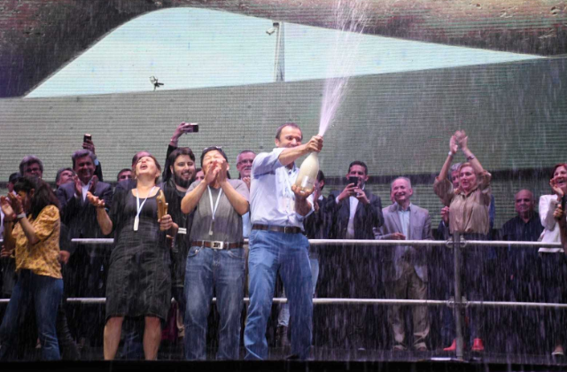 El clásico descorche de champan que fue una felicidad espumante para los ganadores y mucha mucha felicidad de todos los presentes.