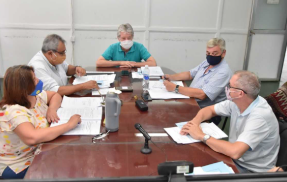 El encuentro fue presidido por el titular de la Legislatura Hugo Sager, y con los diputados Juan Manuel Pedrini, Gustado Corradi, Gladis Cristaldo y por videoconferencia las legisladoras Alicia Digiuni y Teresa Cubells definieron el temario previsto para la sesión ordinaria.