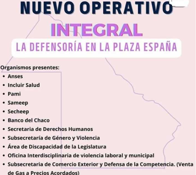 La Defensoría del Pueblo del Chaco realizará un nuevo operativo integral en Resistencia. La nueva iniciativa se desarrollará este miércoles 17 de agosto, de 8,30 a 12,30, en la plaza España de la capital provincial.