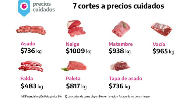 Se trata de los siete cortes de carne más representativos del consumo de las y los argentinos en todo el país, a precios accesibles para el mercado interno, que están disponibles de lunes a viernes en más de 1.000 bocas de expendio de todo el país, que incluyen las grandes cadenas de supermercados: Coto, Jumbo, Plaza Vea, Disco, Carrefour, Walmart, Changomas, La Anónima y Día%; las cadenas mayoristas Vital y Makro, y carnicerías adheridas a la Unión de la Industria Cárnica Argentina (Unica) y al consorcio de exportadores ABC.