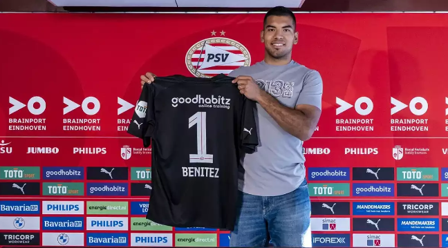 Benítez, de 29 años, mantuvo la segunda valla menos vencida en la temporada pasada de la Ligue 1 de Francia, con apenas 35 goles en contra en 37 partidos jugados en el Niza, y esto llevó al PSV de Países Bajos a posar sus ojos en el arquero, y aprovechó también la finalización de su contrato el 30 de junio pasado para hacerse de sus servicios.