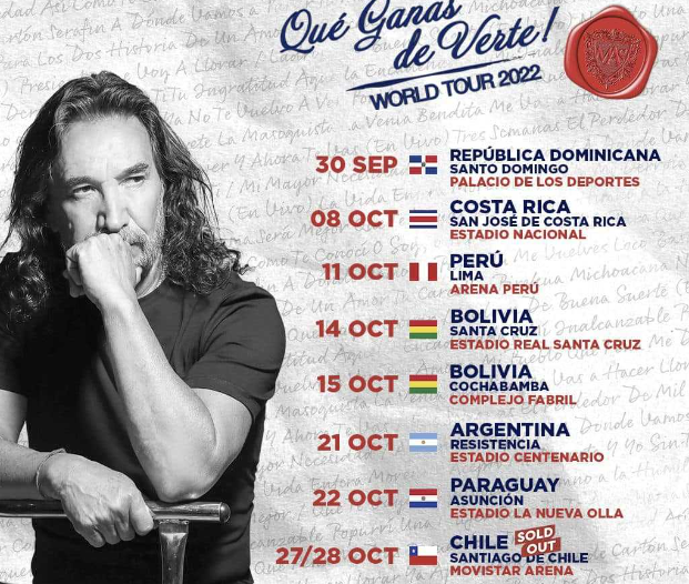 El cantante mexicano Marco Antonio Solís (62 años) se presentará en el estadio Centenario de Resistencia el viernes 21 de octubre en el marco de su gira Qué Ganas de Verte Word Tour 2022.