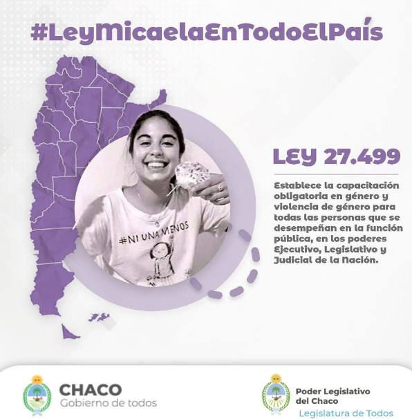 Chaco adhirió a la normativa nacional 27499, de autoría de la actual vicegobernadora —entonces diputada nacional por el Chaco— mediante la ley provincial 2997-G, que lleva el nombre de la víctima de femicidio Natalia Samaniego.
