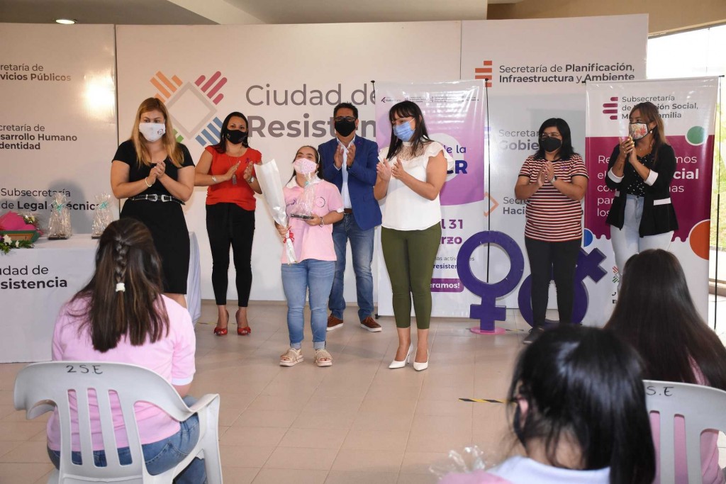 Esta actividad tuvo como protagonistas a personas con discapacidad que forman parte activa de la lucha de las mujeres en pos de consolidar su independencia laboral, social y civil. El intendente Gustavo Martínez junto a la secretaria de Desarrollo Humano e Identidad comunal, Laura Balbis; y la subsecretaria de Inclusión Social, Mujer y Familia, Mónica Bordón, ambas organizadoras de la iniciativa, encabezaron la jornada de distinciones de la cual participaron también la defensora de Niños, Niñas y Adolescentes de Resistencia, Valeria Cruz; y las asistentes ejecutivas comunales en Infancia y Juventud, Virginia Insaurralde y Rocío Moreira.