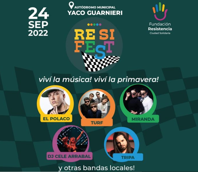 En el Autódromo Yaco Guarnieri, este sábado 24 de septiembre tendrá lugar el Resi Fest, un espectáculo a beneficio impulsado por el municipio de Resistencia, la Fundación Resistencia Ciudad Solidaria y Reserva Eventos. El show iniciará a las 18 y se extenderá durante ocho horas con música en vivo de artistas locales y de renombre nacional como El Polaco, Miranda, Turf y la DJ Cele Arrabal.