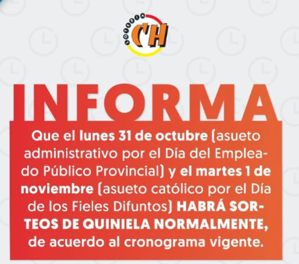 Lotería Chaqueña: Habrá sorteos normales de quiniela los días asuetos del 31 y el 1