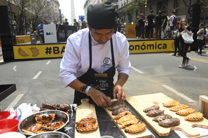 La tercera fiesta de la empanada reunió hoy a cientos de personas con mesas al aire libre, sector de hidratación, globos, algodones de azúcar, show musicales y juegos inflables para los niños y niñas a lo largo de la Diagonal Norte, entre Carlos Pellegrini y Florida, organizado por Buenos Aires (BA) Capital Gastronómica.