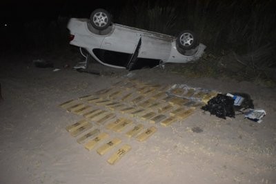 En ese operativo los uniformados intentaron frenar el paso de un automóvil que circulaba a alta velocidad. Como este no se detuvo y no acató las órdenes de "Alto", comenzó una persecución al vehículo para darse cuenta que, desde el interior, y en plena huída, arrojaban unos paquetes rectangulares hacia la banquina.