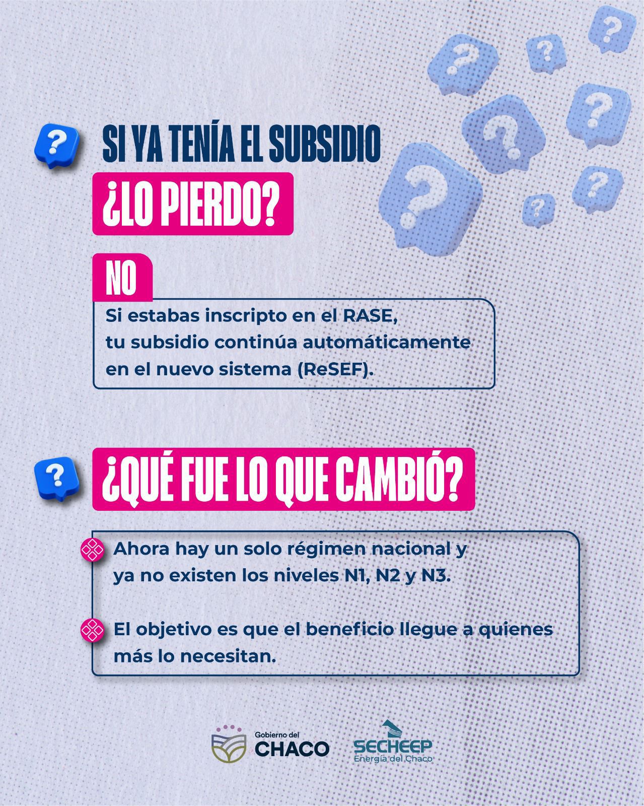 Desde la empresa se recuerda que los usuarios que ya se encontraban inscriptos en el Registro de Acceso a los Subsidios a la Energía (RASE) continúan automáticamente incluidos en el nuevo régimen nacional, denominado Régimen de Subsidios Energéticos Focalizados (ReSEF), sin necesidad de realizar un nuevo trámite.