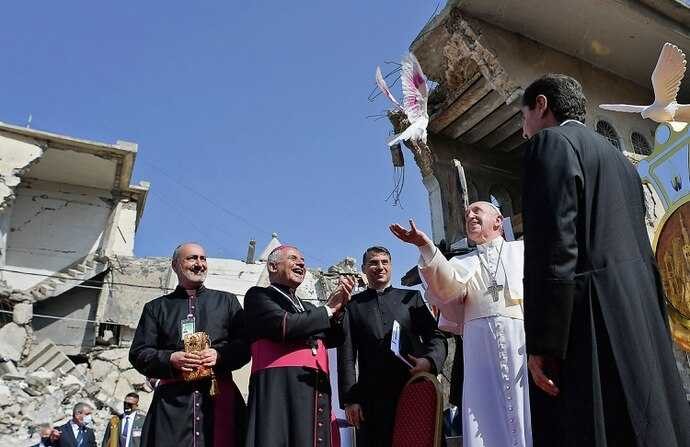 "Junto con todas las personas de buena voluntad, decimos no al terrorismo y a la instrumentalización de la religión", convocó el Papa al hablar desde una Iglesia quemada en 2014 por el grupo extremista, este domingo colmada de fieles para expresar su gratitud a Francisco por una visita que, ansían, pueda ser un nuevo punto de partida para la comunidad.